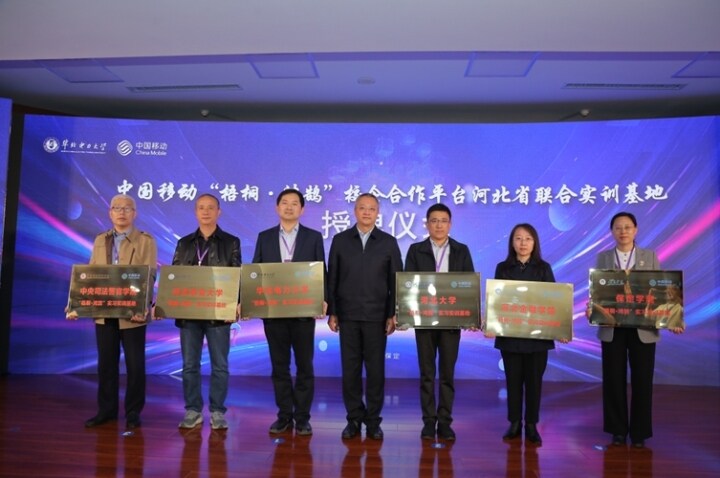 会上,中国移动与华北电力大学、中央司法警官学院、河北大学、河北农业大学、河北金融学院、保定学院等六所高校联合发布了“鸿鹄展翅”河北数智人才高质量发展计划,梧桐·鸿鹄校企合作平台河北省联合实训基地名单也正式公布,中国移动通信集团河北有限公司总经理秦红军向华北电力大学、中央司法警官学院、河北大学、河北农业大学、河北金融学院、保定学院等高校授牌。