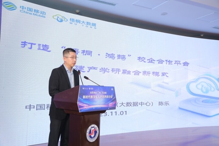 “梧桐·鸿鹄校企合作平台聚焦‘引、育、用、留、评’五位一体人才培育体系,构建了鸿鹄学堂、鸿鹄赛事、鸿鹄实训、鸿鹄招募、鸿鹄社区五大能力,围绕大数据、云计算、人工智能、区块链、网络安全等领域,推出教学实训、技能竞赛、能力认证、实习就业等一站式人才培养服务。”中国移动信息技术中心大数据平台部副总经理陈乐向参会嘉宾具体介绍了梧桐·鸿鹄校企合作平台的组织架构和运行路径。