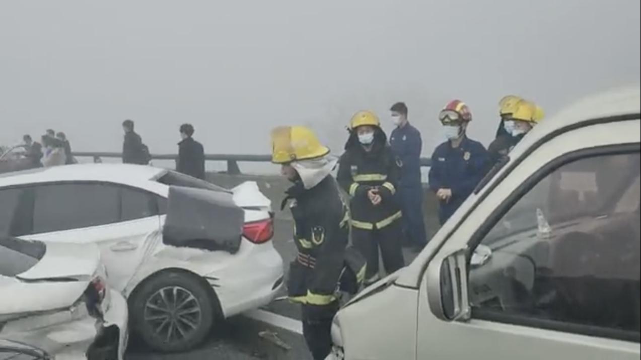 当高速公路上出现团雾时,一旦有车辆驶入,尤其是在车流量较大的情况下,极易造成多车连续追尾事故。
