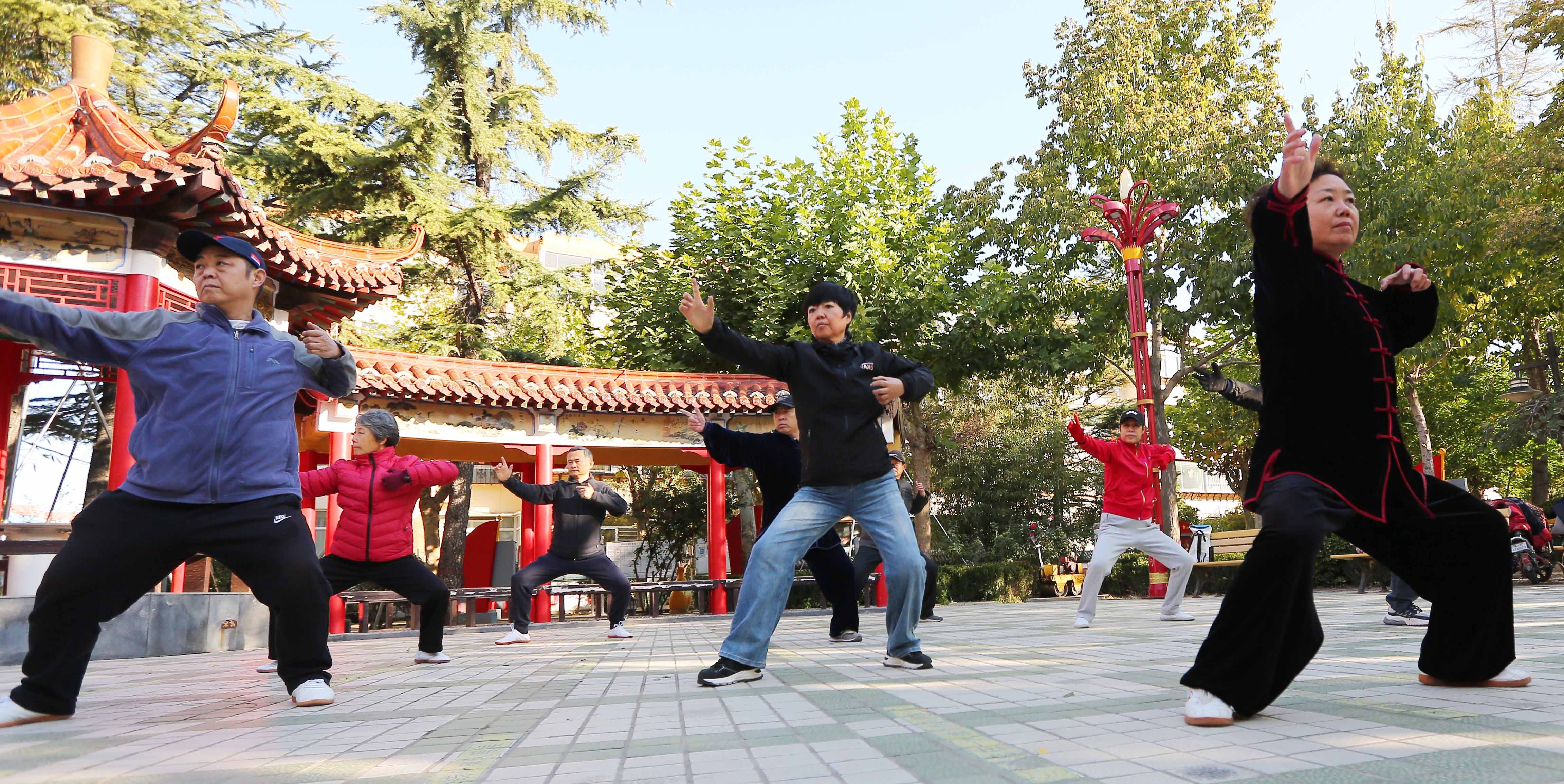 11月7日清晨,天气晴冷,缕缕阳光透过树枝间隙洒落身上。在军休三所小广场上,10余名军休干部照例跟随老师一起学习太极拳,动作刚柔并济、潇洒飘逸。老师细致地把太极拳动作分解,一遍遍地讲给大家听。