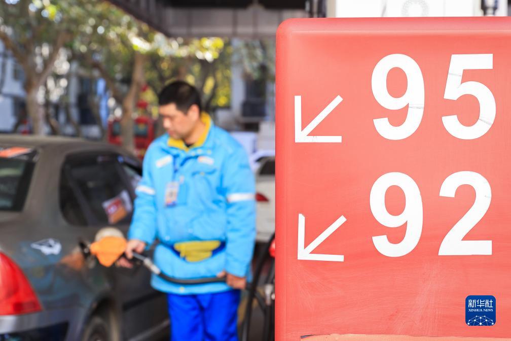 11月21日,江苏南京一加油站的工作人员给汽车加油。新华社发(苏阳摄)
