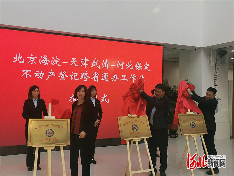 11月29日,保定市和北京市海淀区、天津市武清区三地不动产登记跨省通办工作站同时在北京揭牌。河北日报记者林凤斌摄