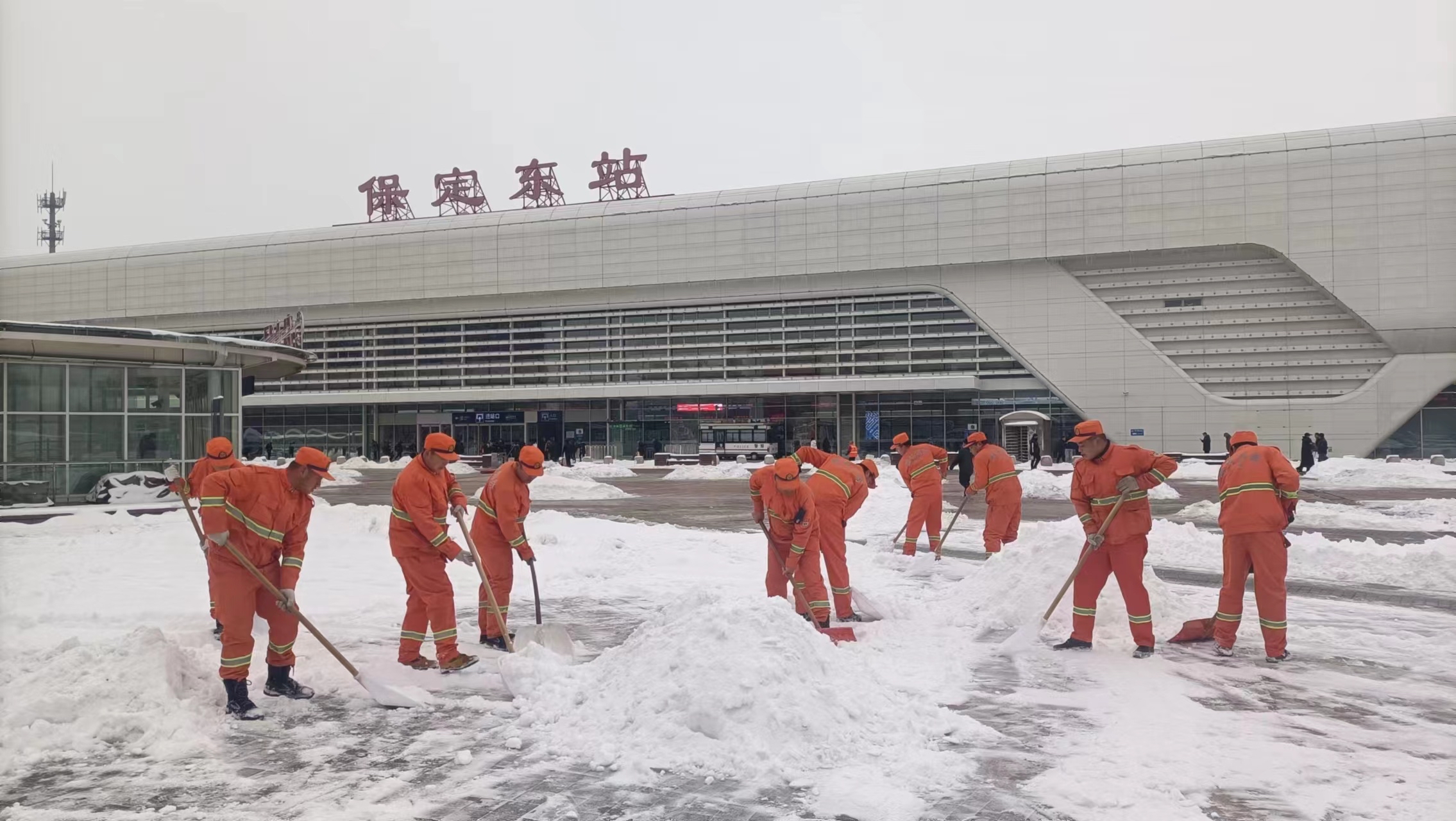 保定日报讯(通讯员臧伟峰)12月15日,市应急管理局在保定东站开展清雪除冰行动,历经3个多小时,累计清理积雪110余立方米、地面冰冻层80余平方米,为来往旅客安全保驾护航。