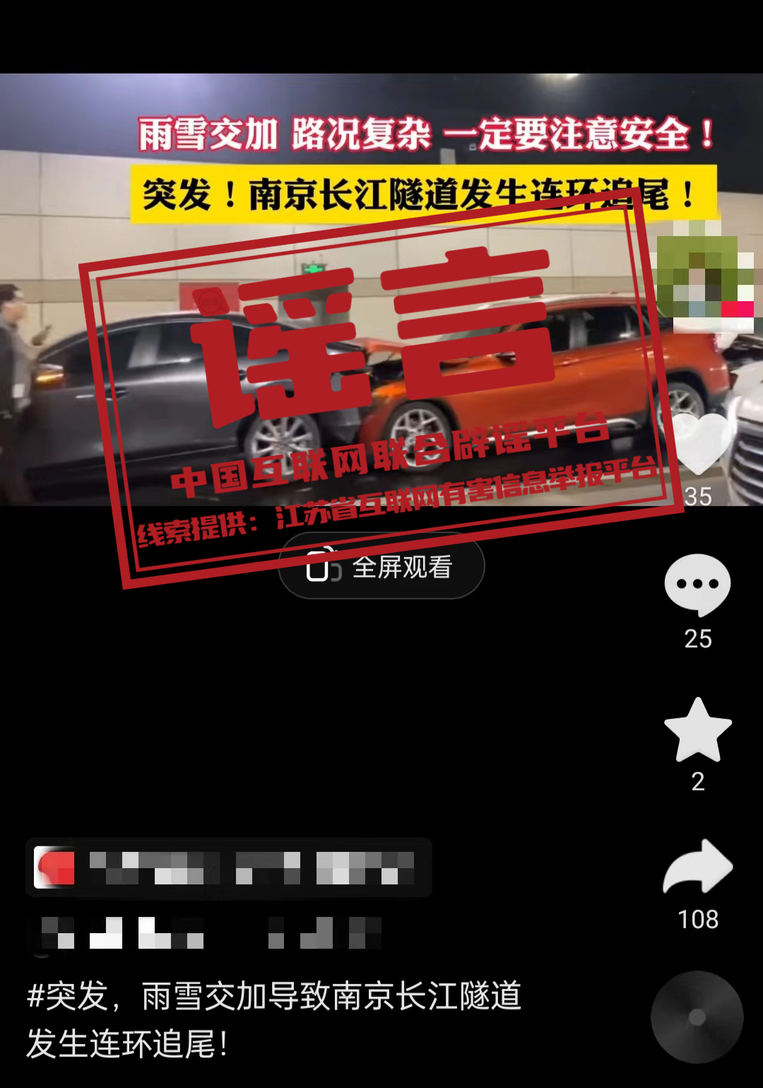 谣言:南京过江隧道多车连环追尾?