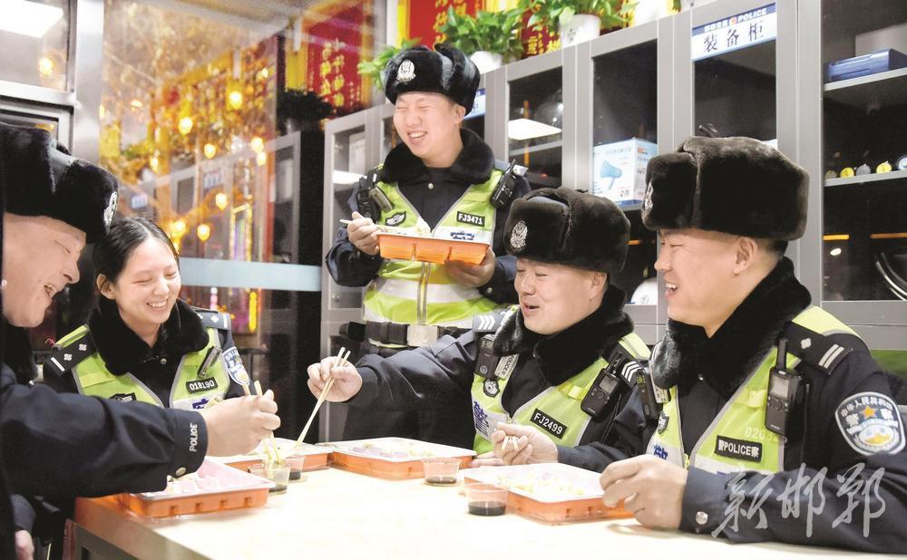 除夕夜,东方广场警务站民警吃上热气腾腾的饺子 邯郸新闻传媒中心记者 郝群英 摄