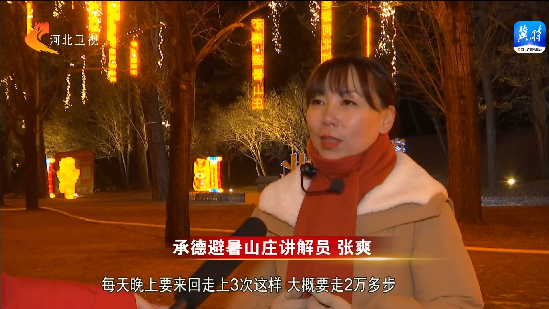 承德避暑山庄讲解员 张爽:在灯会期间,我们夜晚也要加班,每天晚上要来回走上3次这样,大概要走2万多步。