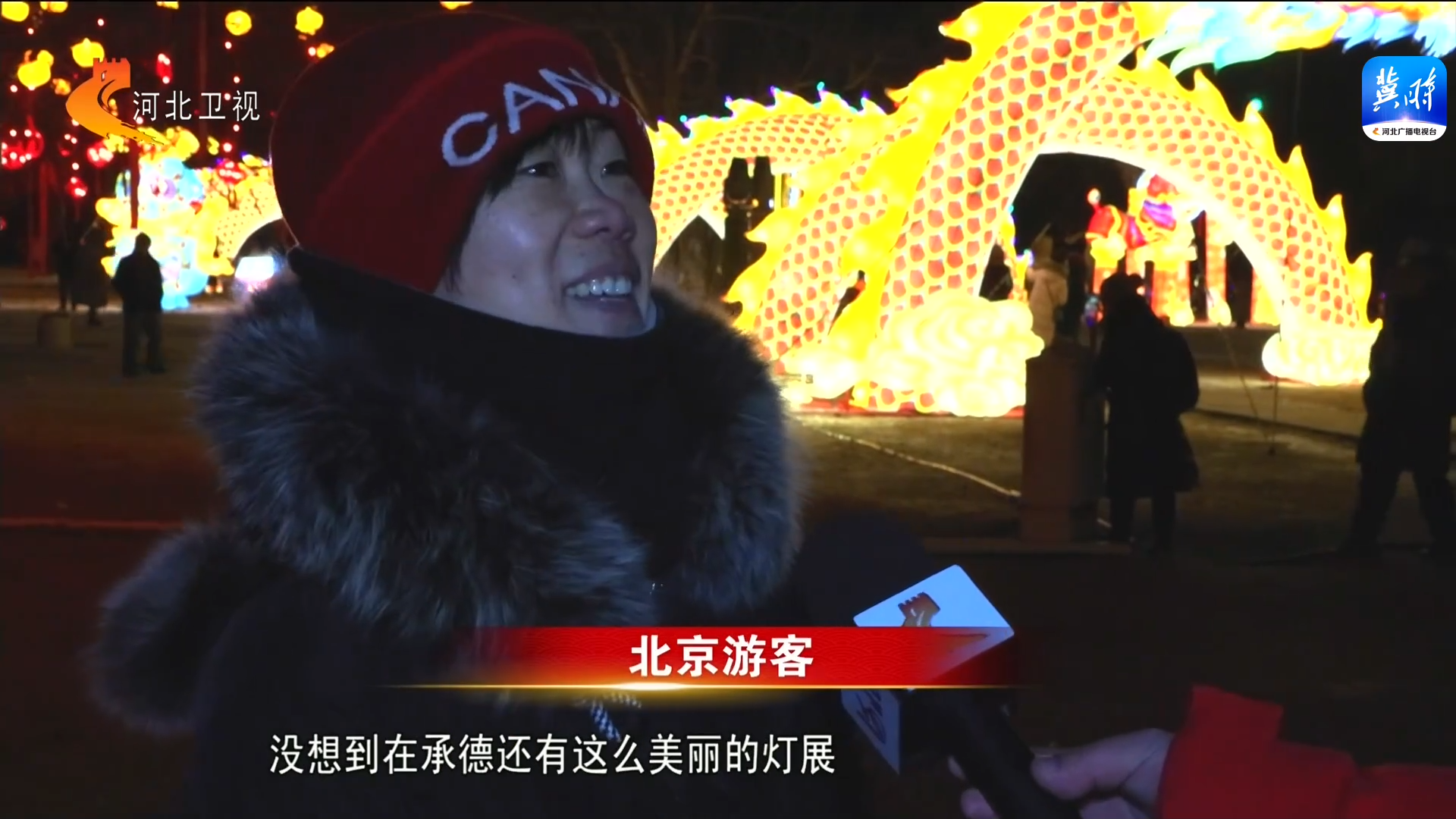 北京游客: 这个冬天,来到承德真的让我特别意外,没想到在承德还有这么美丽的灯展,特别开心,特别兴奋。