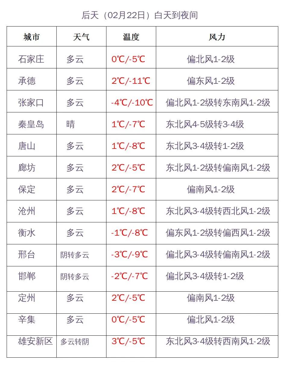 河北省气象台2024年02月20日11时发布天气预报:
