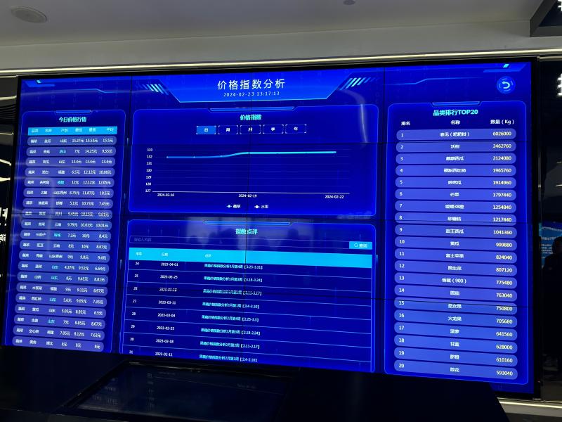 首衡高碑店市场展示中心智慧化管理系统电子屏幕上的价格指数分析