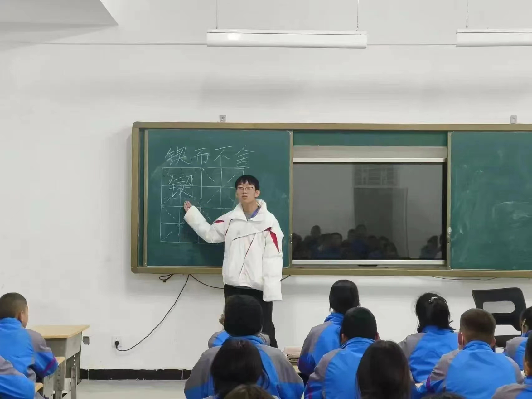 2023年3月,宋腾傲跟随援疆支教团队到轮台县群巴克镇九年一贯制学校,担任起七年级八个班的书法课老师。“在班里,学生们左手写字,倒着拿书本读书的现象很常见,我就想,纠正写字的笔画笔顺不急于一时,最要紧的是怎样让他们相信自己可以做好。”