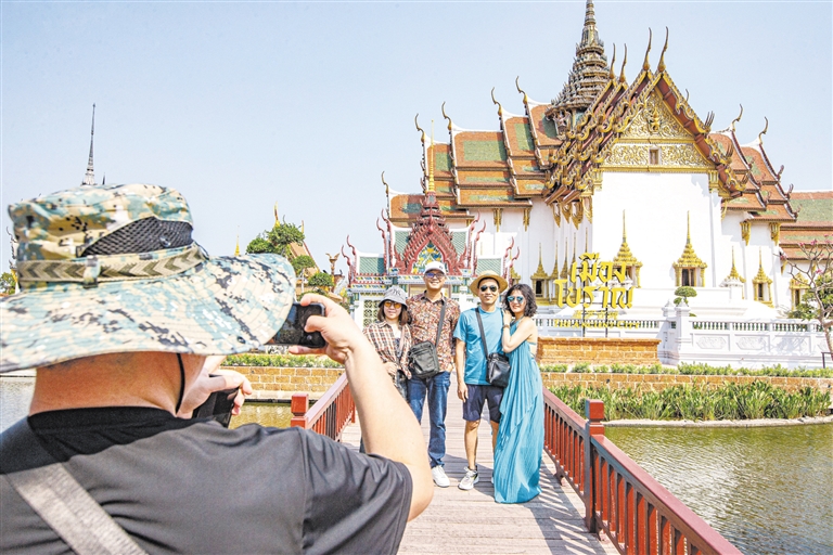 3月1日,中国游客在泰国北榄府暹罗古城拍照。 3月1日,中国与泰国互免持普通护照人员签证协定正式生效,中泰迈入“免签时代”。该协定于1月28日在泰国首都曼谷签署。根据协定,中方持公务普通护照、普通护照人员和泰方持普通护照人员,可免签入境对方国家,单次停留不超过30日,每180日累计停留不超过90日。 新华社记者 王腾 摄