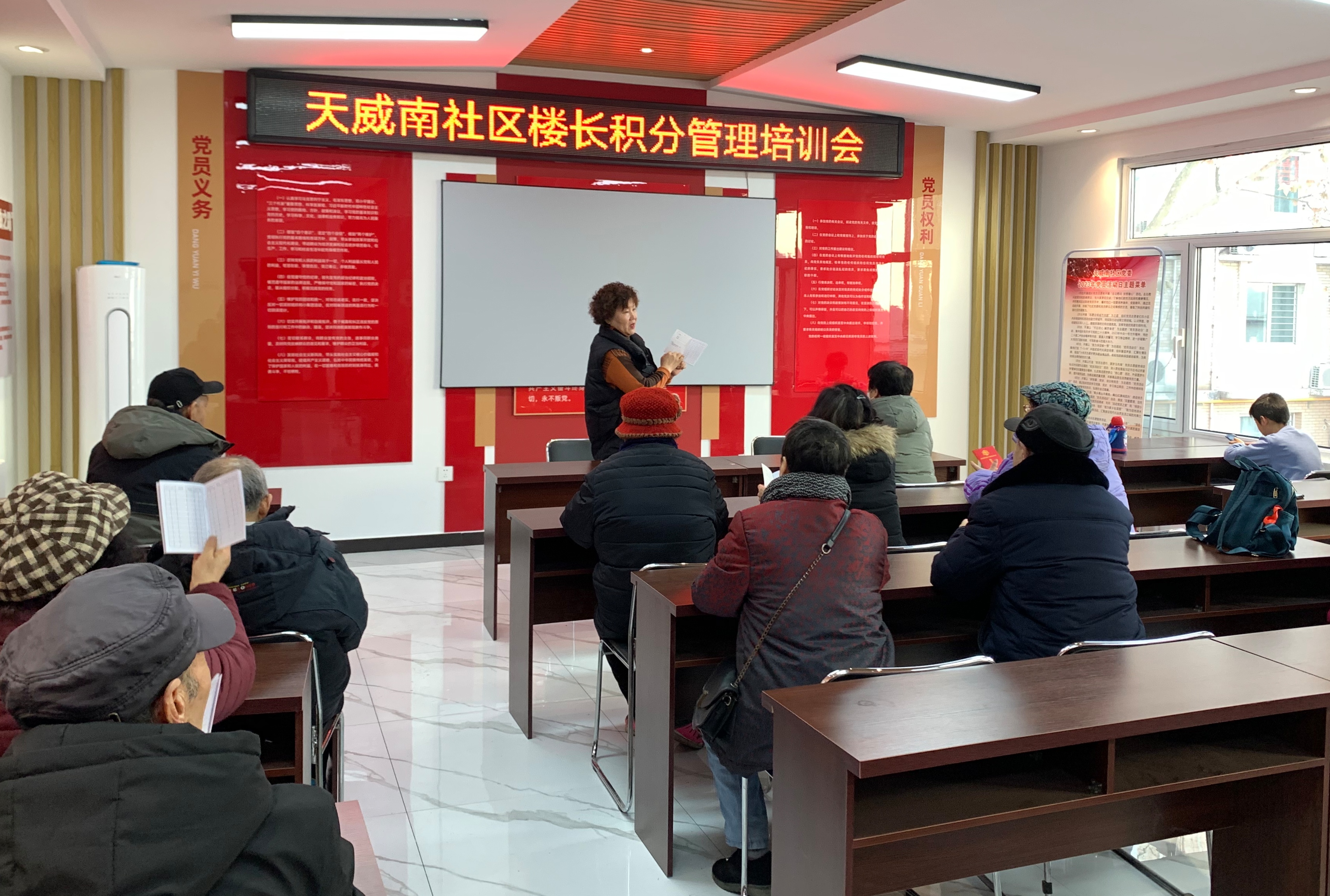 楼院长是社区与居民交流沟通的重要桥梁与纽带,在反馈居民信息、传达社情民意、宣传法律政策等方面发挥着重要作用。培训会上,天威南社区党委书记王静为每位楼院长发放了一本楼长积分手册。在这个红色的小本子上,详细介绍了积分设置明细和积分兑换规则。