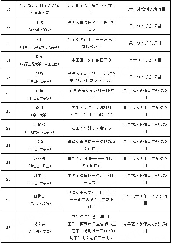 近日,国家艺术基金(一般项目)2024年度资助项目名单公示,河北省共有27项入选,较上一年度翻番。