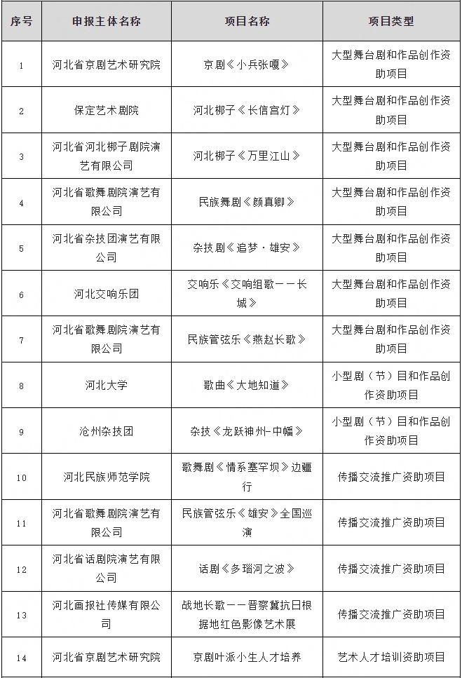 河北省国家艺术基金2024年度资助项目河北省公示项目名单