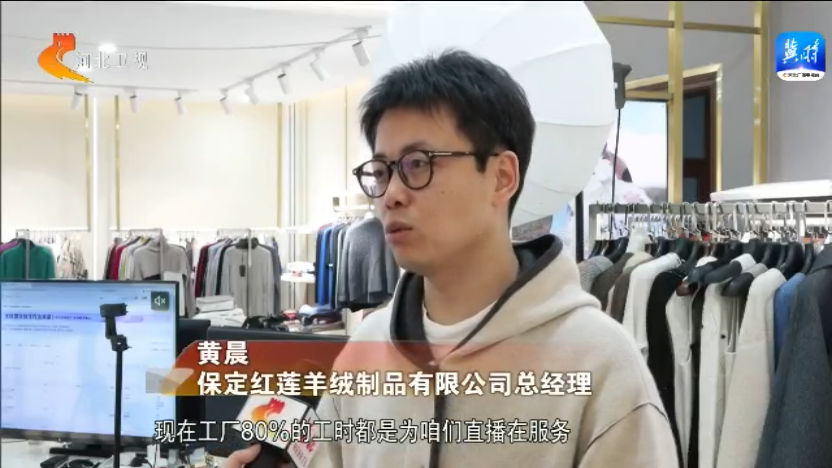 在瞄准"平台"做文章,坚持以债券做园区,搭建县域产业承载平台的同时,我省还抓住直播带货等电商新潮流,为县域特色产业拓展销路。去年以来,我省印发专门工作方案,明确提出要结合县域经济特点,提升县级电商服务中心功能,扩大电商覆盖面。在保定蠡县,传统的毛纺织产业,就搭上了直播带货的快车。晚上七点,保定红莲羊绒制品的商业平台账号准时开始了直播。不到一个小时,直播间的销售额已经超过了七万元。企业负责人黄晨告诉我们,日均30万以上的销售额在红莲的直播间已是常态。