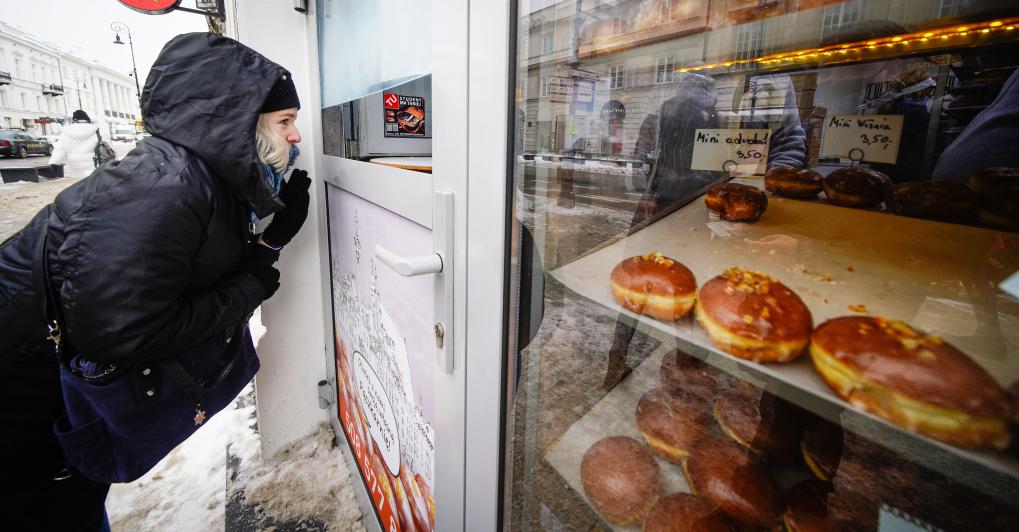图为2021年2月11日,一名女子在波兰首都华沙的一处面包房购买甜面包。新华社发(亚普·阿林 摄)