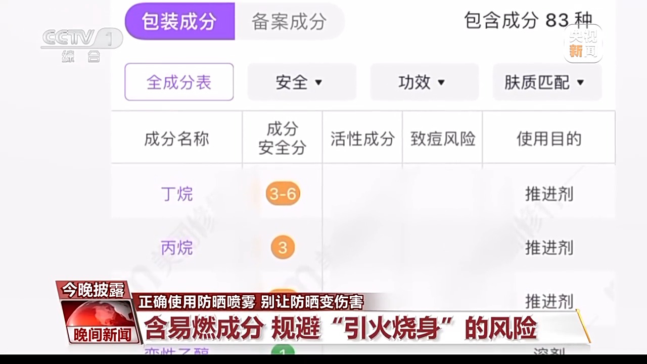 医生建议,防晒喷雾尽量不要对脸喷涂,如果一定要使用的话,最好在通风的地方使用。此外,由于一些防晒喷雾的推进剂含有甲烷、丙烷、异丁烷等易燃成分,使用时遇到明火,极有可能引火上身,因此使用防晒喷雾时,还要留意身边是否有火源。