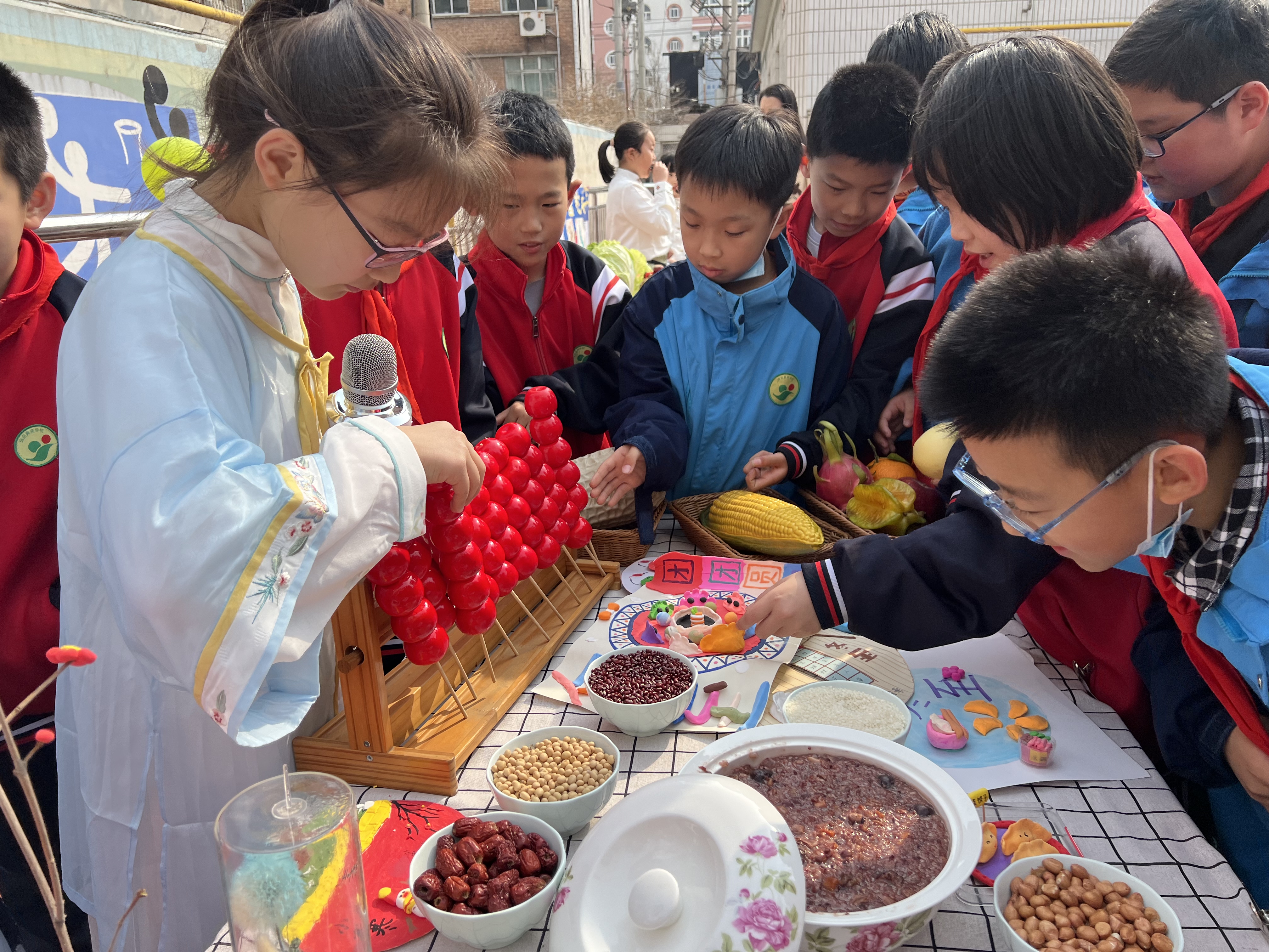 此次活动不仅展示了全体四年级学生一年来在项目化学习中的努力与收获,也为全校师生带来一场视觉与心灵的盛宴。活动当天,校园被装扮得如诗如画——春暖花开、夏日炎炎、秋收冬藏,四季的变化在这里得到完美诠释。每个节气板块都设有一个展台,同学们身着华丽汉服,自信满满地向观众介绍每个节气的相关知识点。除了各个季节板块展示外,活动现场还有精彩的文艺表演。同学们用舞龙表演,生动演绎二十四节气的文化内涵;一首名为《二十四节气歌》的歌曲,更是让全场师生家长为之动容,歌词中融入了对大自然的敬畏和对传统文化的热爱,让人感受到了中华文化的博大精深。