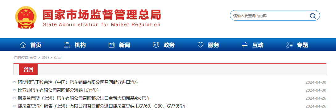 发布了一批车辆召回信息