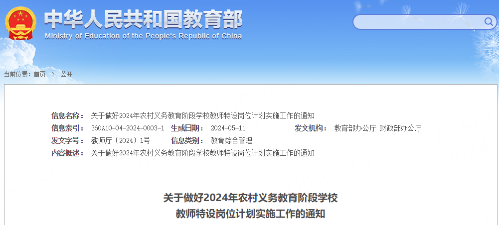 关于做好2024年农村义务教育阶段学校教师特设岗位计划实施工作的通知
