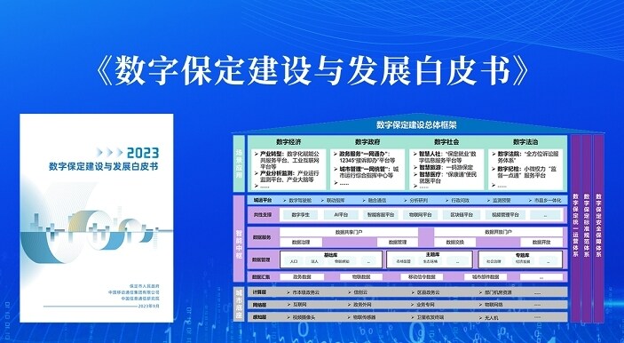 2023年,保定移动中标“数字保定新基建”项目,按照《数字保定建设“十四五”规划》总体架构,构建一个城市底座、一个数字中台、一个服务入口“三个一”总体架构体系,支撑保定市数字政府、数字社会、数字经济、数字法治四大应用领域。2023年2月,保定移动承办数字保定典型应用创新大赛,围绕数字支撑政务、数字赋能经济两大赛道,征集118个数字应用成果展示交流。9月,联合中国信通院、保定市工业和信息化局、保定数字城市投资发展集团发布《数字保定建设与发展白皮书》,提出“整体集约、共建共享”原则,建立多元开放的“1+6”工作体系,创新多方参与的数字保定运营生态,力争打造全国数字经济发展新的增长极。