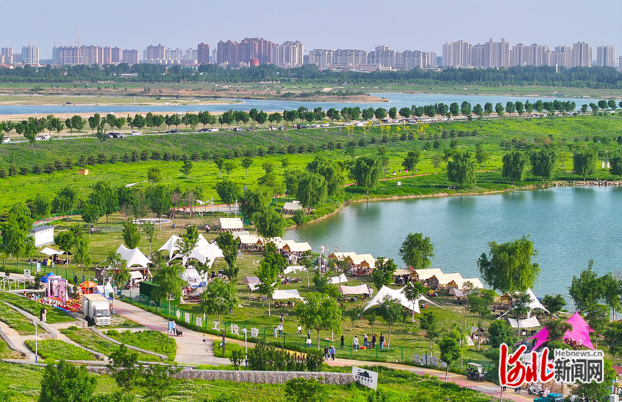 近日,游客在石家庄市滹沱河畔的廉州云湖风景区享受露营乐趣。 河北日报记者 史晟全摄