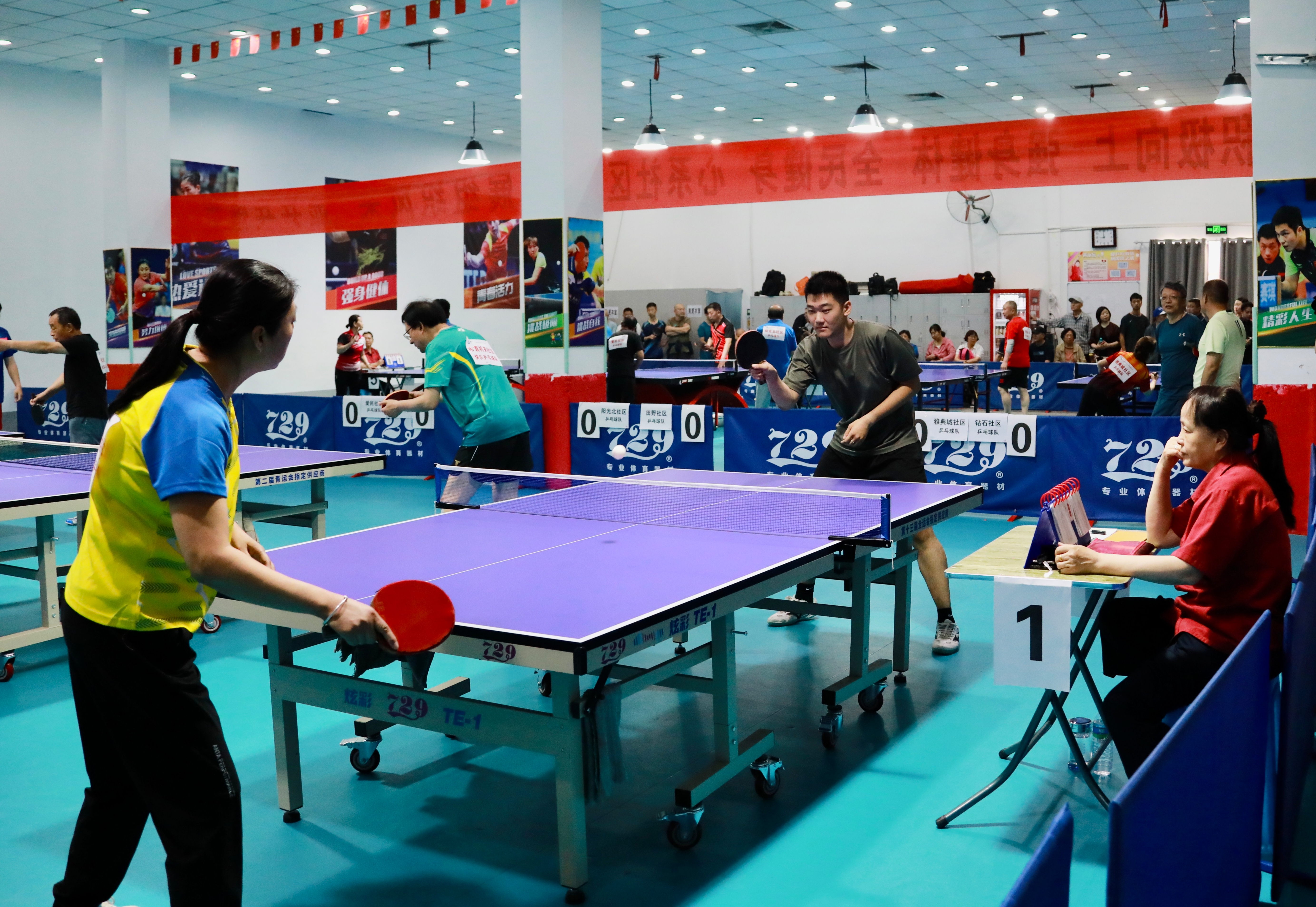 赛场上,选手们个个斗志昂扬、奋勇拼搏,将接发球、拉球、削球等技巧表现得淋漓尽致,挥拍移步间展现着娴熟高超的乒乓球技。阵阵喝彩声随着空中飞舞的银球此起彼伏,整个活动现场洋溢着“团结、友谊、和谐”的热烈气氛。团体赛后的专业运动员表演赛更是燃起所有人的激情,把活动一次次推向高潮。经过激烈角逐,最终市直机关社区获得冠军,国宅社区获得亚军,九华社区、钻石社区并列季军。