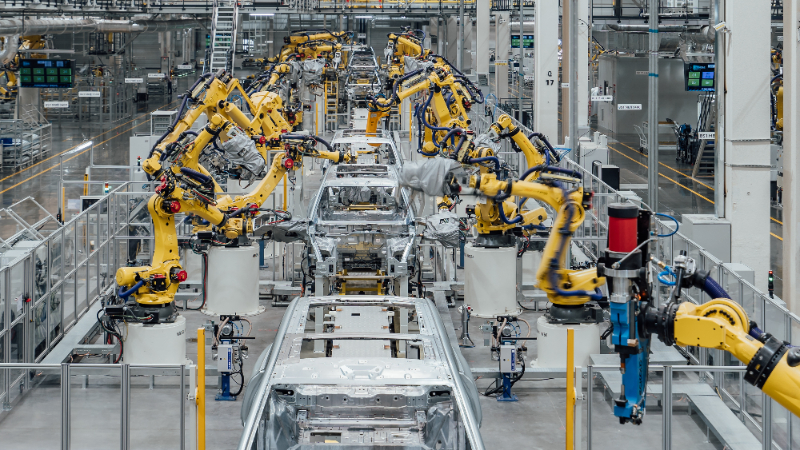 资料照片:这是在重庆市两江新区拍摄的赛力斯汽车超级工厂焊装车间生产线。新华社发(高彰 摄)