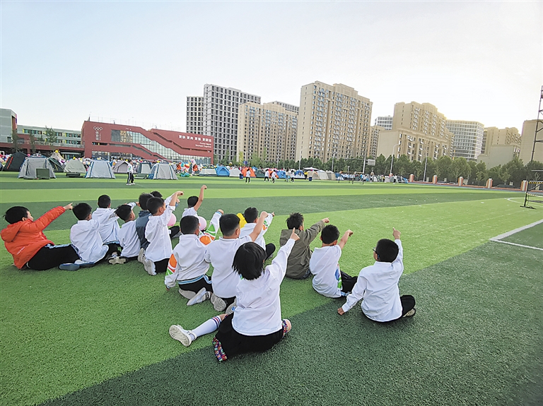 古筝表演、打击乐、民族舞、武术……孩子们在舞台上尽情展现自己的才艺。当晚9时,孩子们在老师的带领下回到露营区,以班级为单位开展特色活动。“我太喜欢我的帐篷了,因为我可以和同学在一起住,我一定会越来越勇敢。”该校一年级七班的李谦益小朋友表示,今天他还作为代表上台和同学们分享了自己的勇敢故事,收获很多。