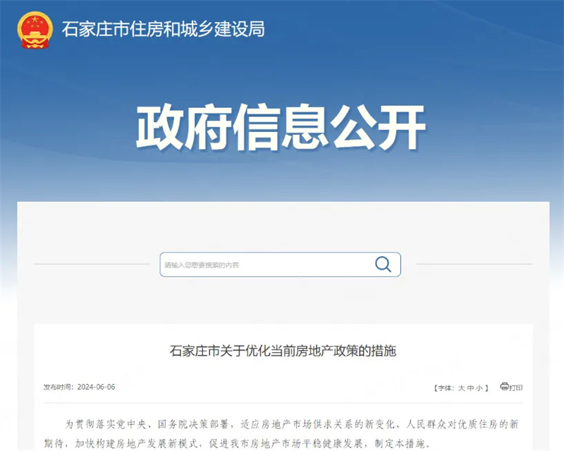6月6日,石家庄市住房和城乡建设局官网发布《石家庄市关于优化当前房地产政策的措施》,措施涉及实施购房补贴、开展以旧换新、发挥公积金作用等内容。