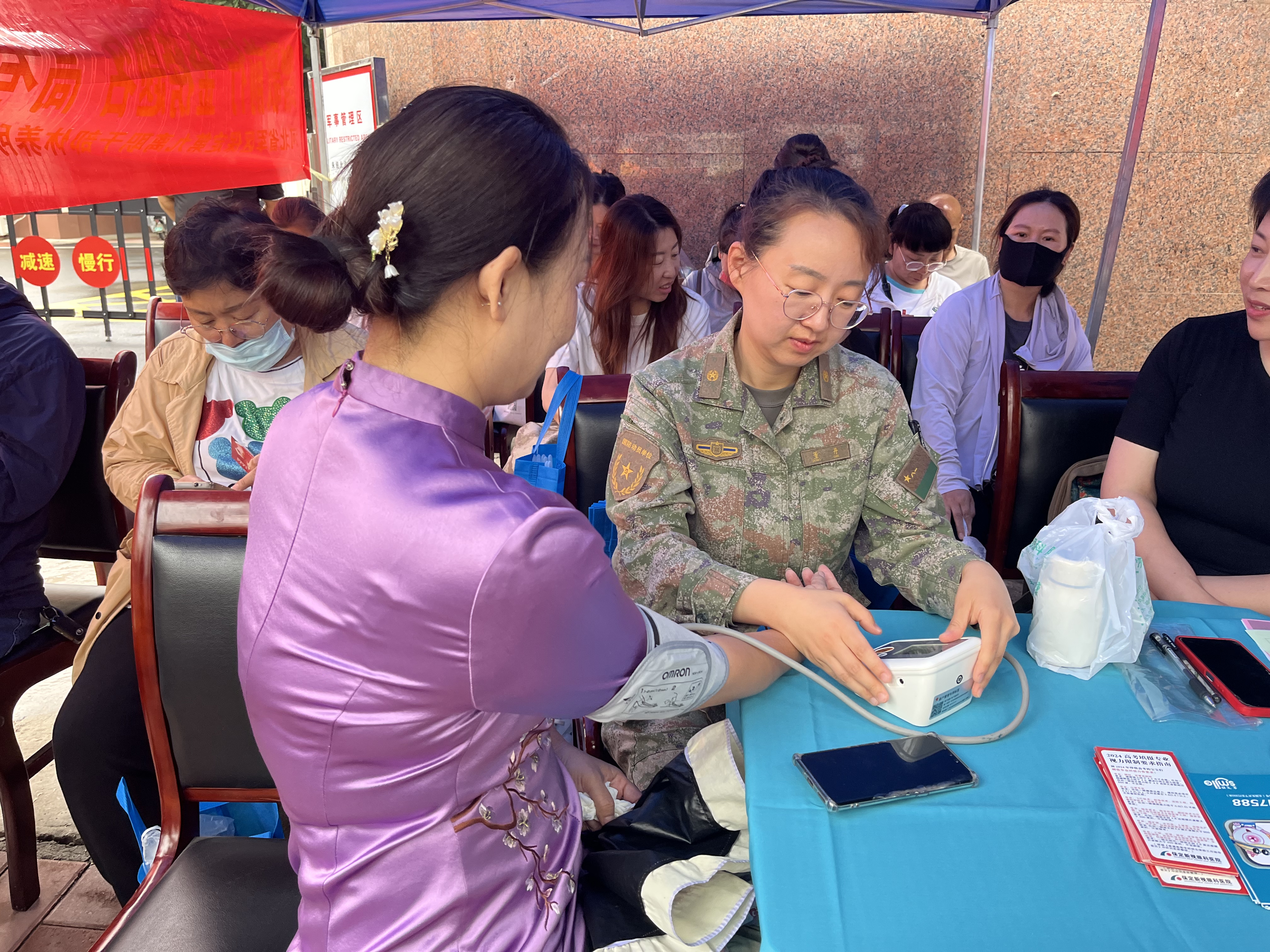 活动现场,志愿者服务队在考点外设立爱心服务站,为考生和家长准备了休息桌椅以及饮用水、藿香正气水、文具、扇子、风油精等物品,并配备血压仪、血糖仪,免费为考生和家长测量血压、血糖以及提供咨询服务,用真诚的微笑服务全力化解考生和家长们焦躁紧张的情绪。据了解,本次护航高考志愿服务活动将持续三天,共准备了50余箱矿泉水、500把扇子等物资。
