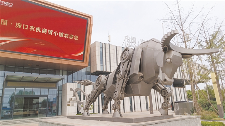 展示中心门口的庞口大道正在拓宽升级。作为连通庞口汽车农机配件市场、农机博览城、智慧物流中心、智能装备制造园区、金奥新能源汽车管件、中国农机装备产业互联网数字生态园等项目的大动脉,庞口大道似本地农机产业链条一般宽广延伸。在庞口,科研、制造、国内国际贸易、品牌、销售和配套服务环环相扣,年销售额达300多亿元,独占全国农机配件市场半壁江山。