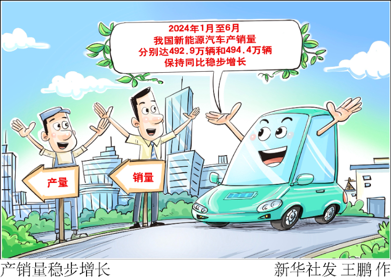 新华社北京7月10日电(记者高亢、韩佳诺)记者10日从中国汽车工业协会获悉,2024年1月至6月,我国新能源汽车产销量分别达492.9万辆和494.4万辆,同比分别增长30.1%和32%,市场占有率达35.2%。