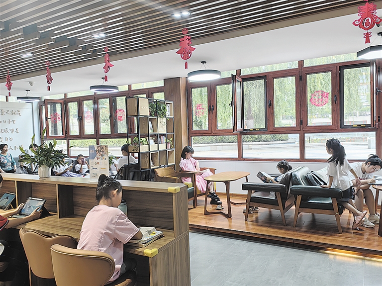 暑假来临,满城区中景华庭C区的华庭书咖里随处可见读书、写作业的孩子。孩子们穿梭于这间书店大厅,犹如在自己家客厅一样放松、随意。这是新华书店建在小区里的社区体验店,也是附近居民阅读、享受慢时光的理想场所。