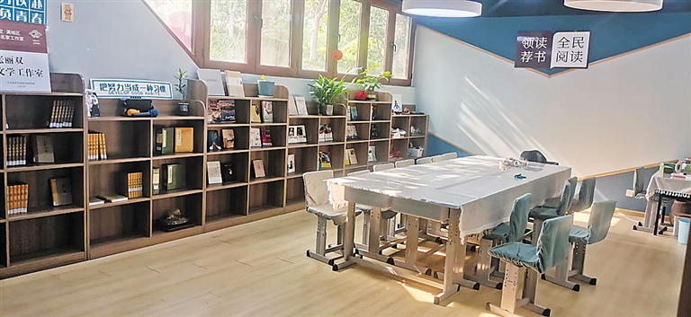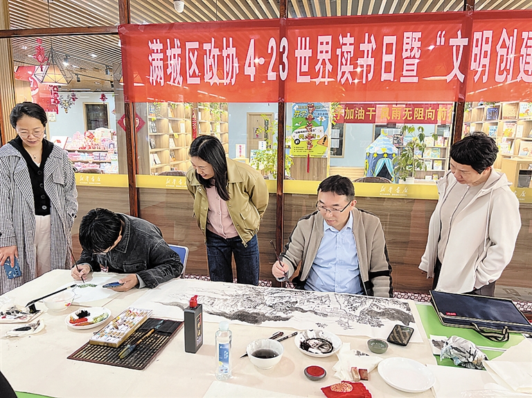 书咖西侧的房间里,课桌拼就的宽大长桌接满盛夏的阳光。这里是满城区委宣传部设立的文化名家工作室,领衔人张丽双是满城区融媒体中心记者、市作家协会会员,在这里,她发挥自己在文化领域的影响力,将文化活动带给周边的市民。“为了让活动更有趣,有更多人参与,我们会尽量丰富文化活动的主题。我们吸纳更多的女性和孩子参与诵读,参与读书分享,做九九消寒图,做端午雅集,体验非遗项目……”张丽双说,这种设在社区里的读书空间非常好,不仅为大家提供了优质的阅读环境,也能成为一个文化体验、文化交流的窗口,让更多人通过阅读相识,通过文化活动碰撞出更多的思想火花。