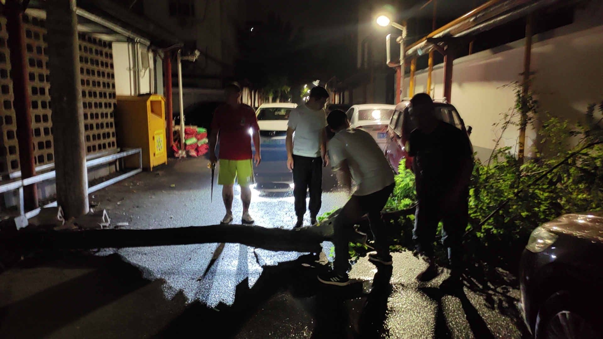 7月30日凌晨0点3分,正在睡梦中的竞秀区新市场街道廉良社区党委书记卢英朴被一阵手机铃声吵醒了,原来是仁惠街被一倾倒的树木挡住了,车辆无法正常通行,需要紧急处理。