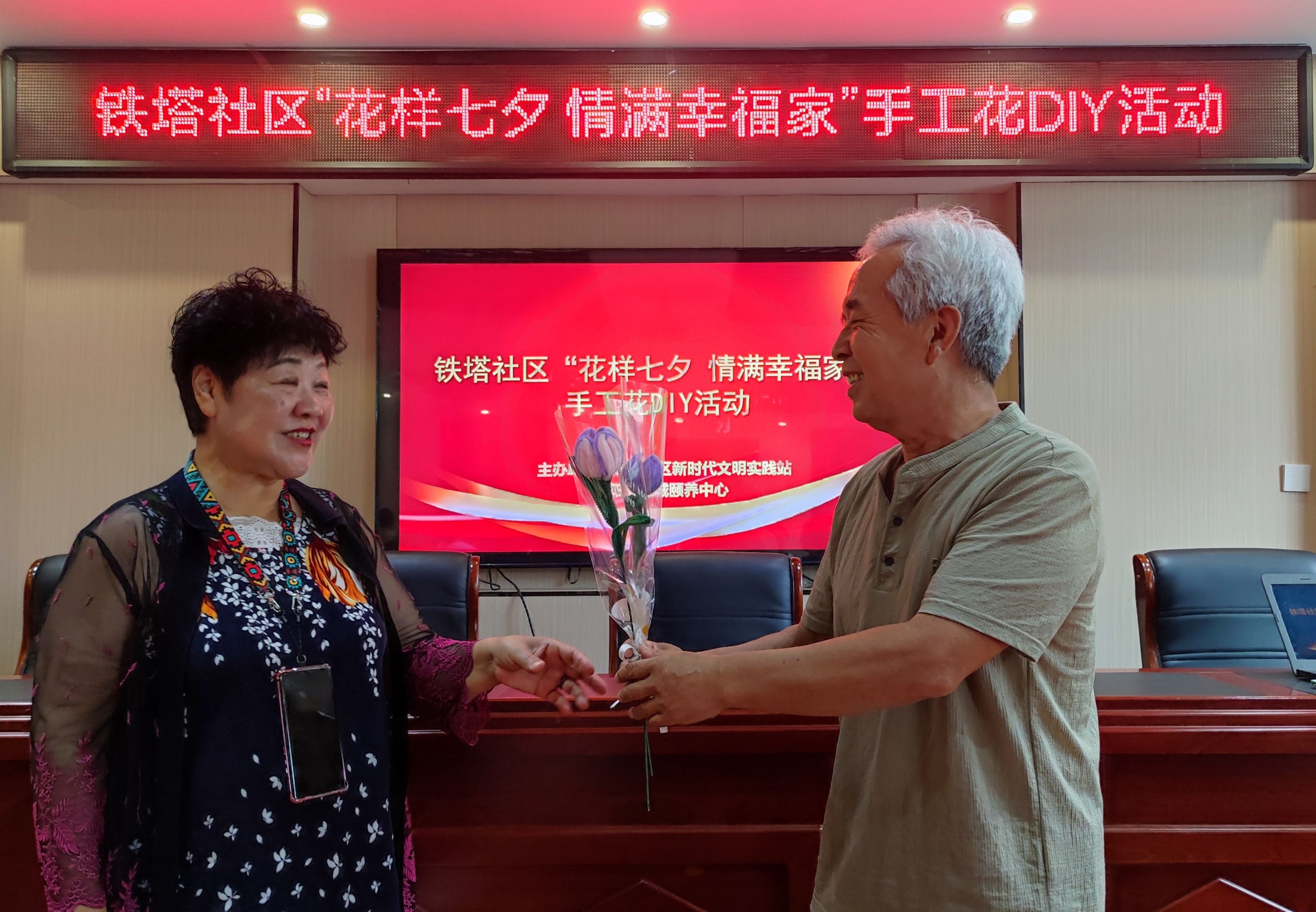 保定晚报讯(通讯员冯蕾)8月7日,竞秀区铁塔社区新时代文明实践站联合阳光康诚颐养中心共同开展“花样七夕 情满幸福家”手工花DIY活动。