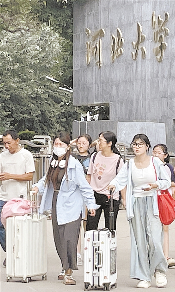 当记者正要离开时,有三个女生问能不能帮她们拍个合影。她们也是新生,被分配在一个宿舍,半天时间相处下来已觉十分投缘。谈到未来的大学生活她们无限期待。河大的莘莘学子正怀着对未来的憧憬,开启大学新生活。