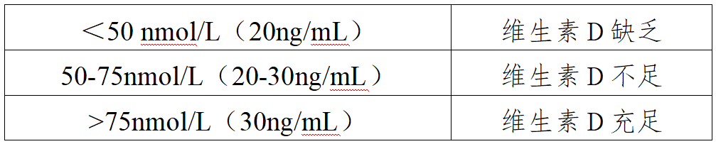 检测血清25-羟基维生素D[25-(OH)VD]是反映体内维生素D储备水平的最好指标。中国成年人群血清25-羟基维生素D的参考值如下: