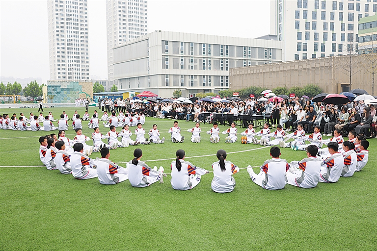 保定晚报讯(记者孙鹏)9月14日,北京市八一学校保定分校举办七年级新生入学教育成果展,该校七年级全体师生与家长参加。