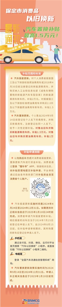 9月27日,记者在我市新闻发布会上了解到,我市已全面启动汽车、家电、家装、电动自行车以旧换新工作,让百姓在“家门口”享受政府惠企利民政策带来的红利。即日起,本报将以“百问百答”形式对汽车报废更新及置换更新、家电、家装、电动自行车等消费品以旧换新政策进行详细解读。