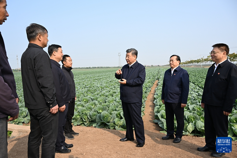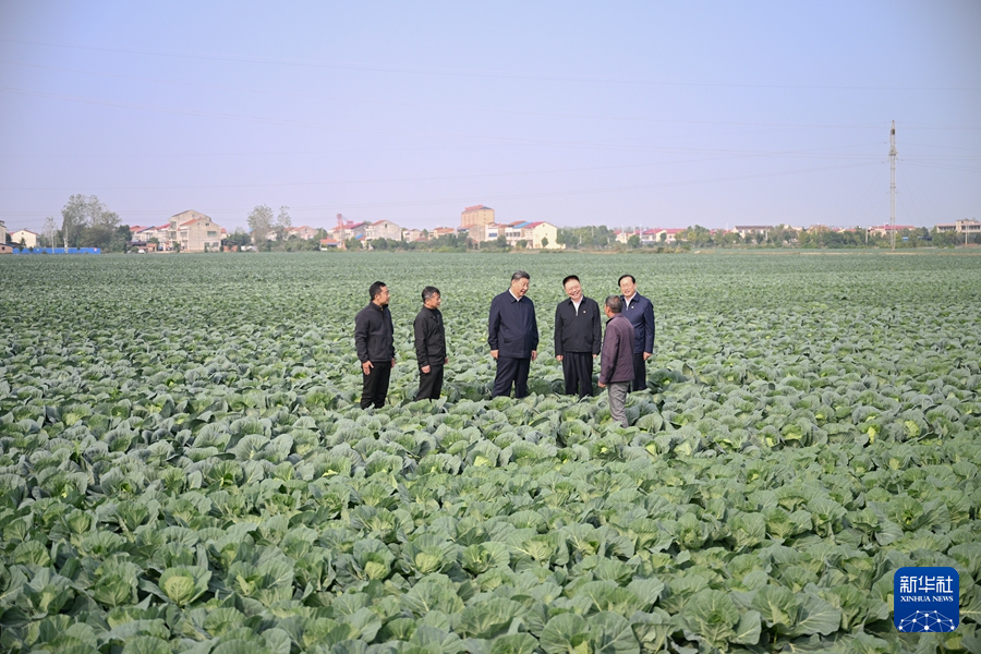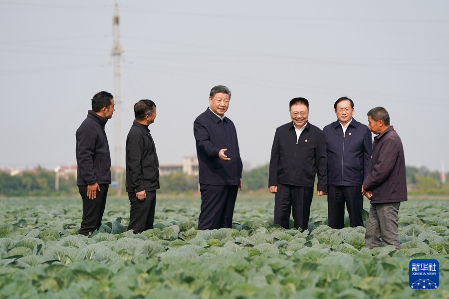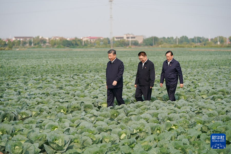 11月4日至6日,中共中央总书记、国家主席、中央军委主席习近平在湖北考察。这是5日上午,习近平在咸宁市嘉鱼县潘家湾镇十里蔬菜长廊考察时,走进田间,察看蔬菜长势。