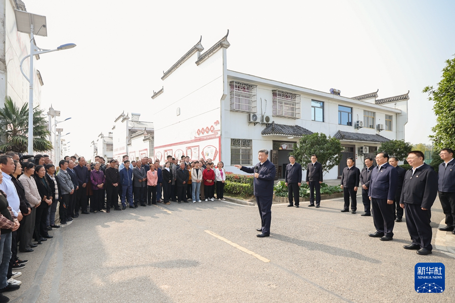 11月4日至6日,中共中央总书记、国家主席、中央军委主席习近平在湖北考察。这是5日上午,习近平在咸宁市嘉鱼县潘家湾镇四邑村考察时,同村民们亲切交流。