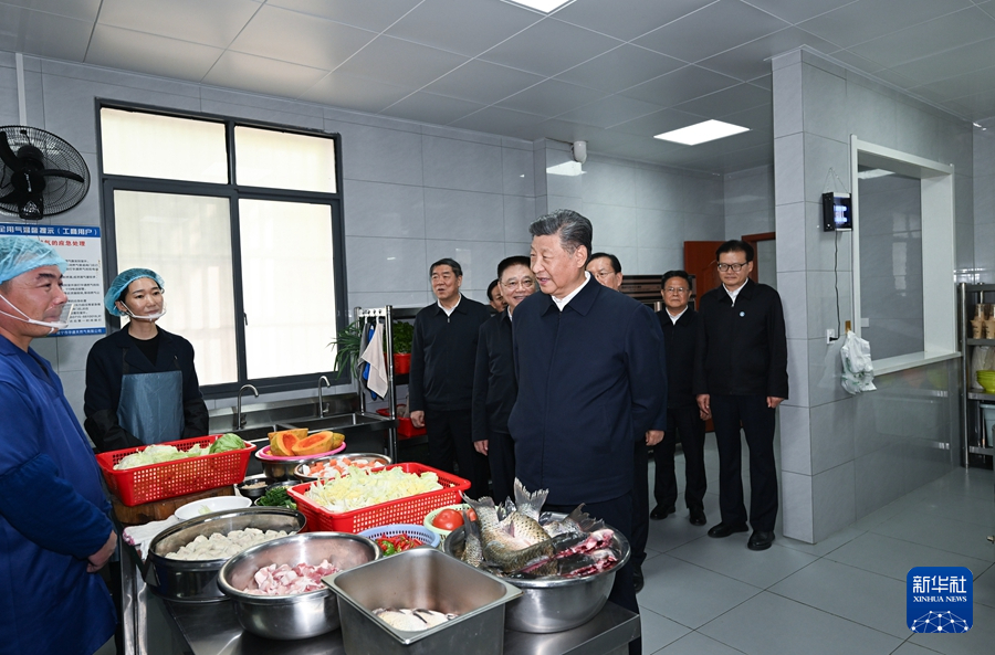 11月4日至6日,中共中央总书记、国家主席、中央军委主席习近平在湖北考察。这是5日上午,习近平在咸宁市嘉鱼县潘家湾镇四邑村养老服务驿站食堂考察。