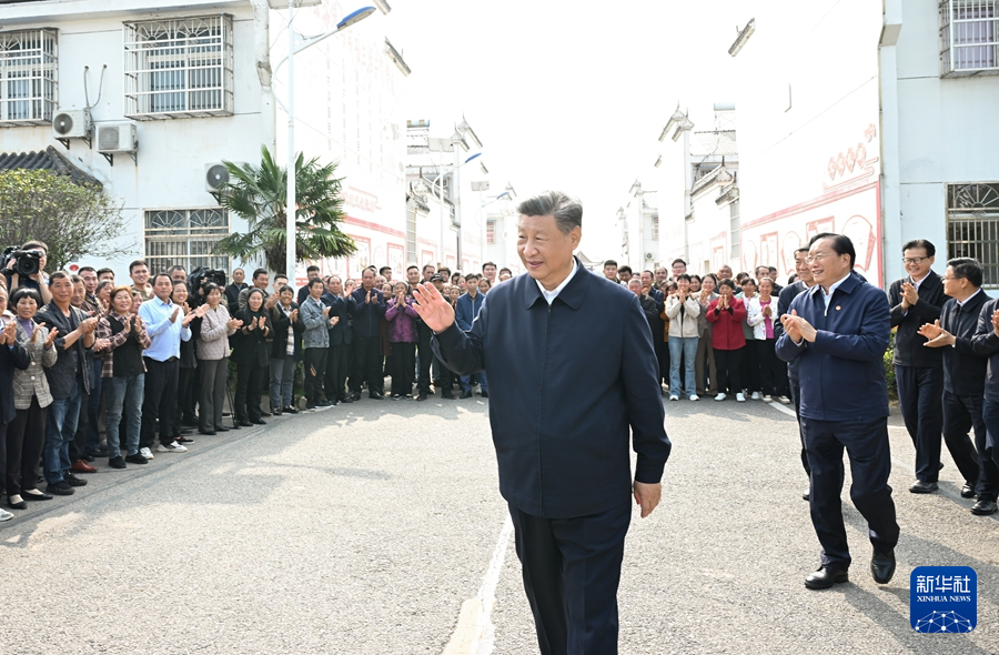 11月4日至6日,中共中央总书记、国家主席、中央军委主席习近平在湖北考察。这是5日上午,习近平在咸宁市嘉鱼县潘家湾镇四邑村考察时,向村民们挥手致意。