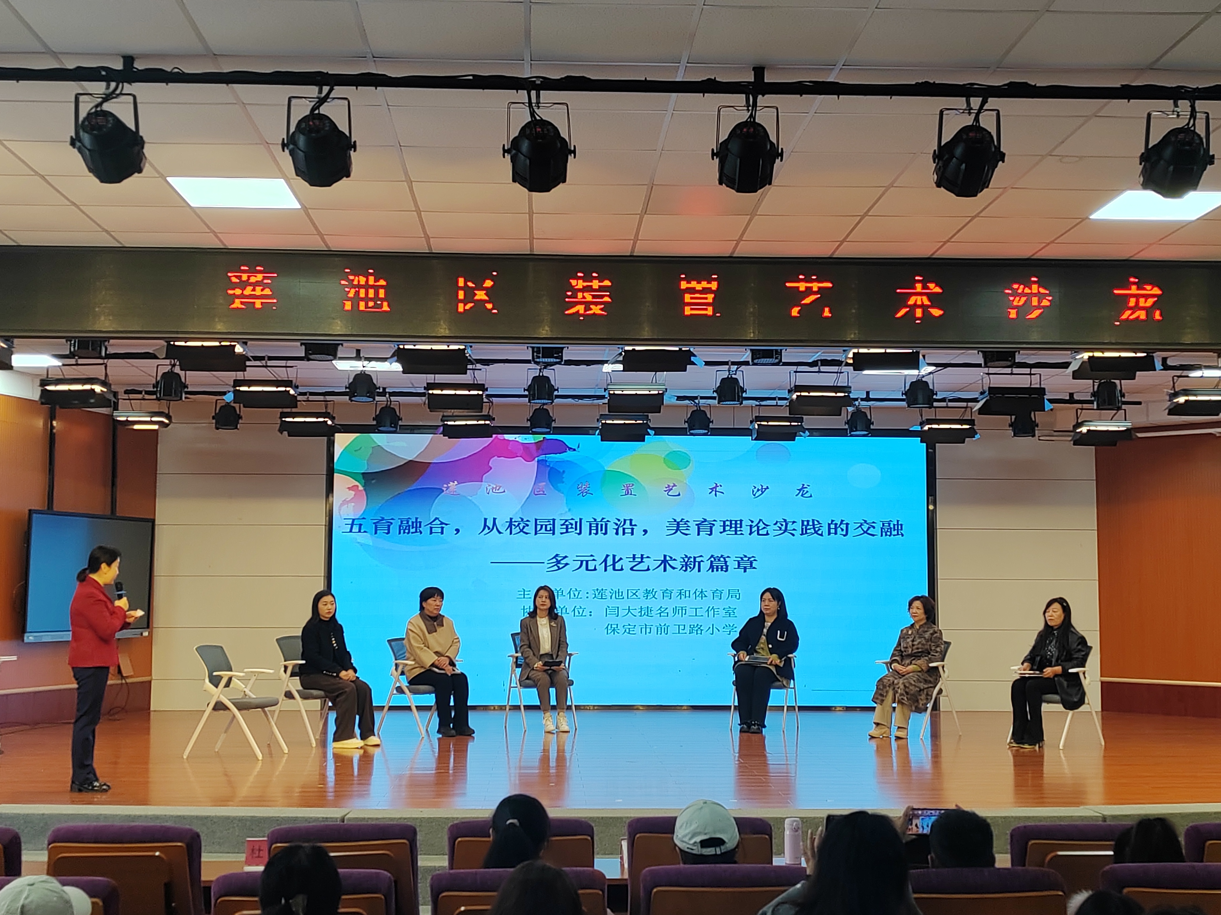 据了解,沙龙活动旨在构建新时代的校园文化,共同探讨美育教育的融合性、多元性,推动“场地+材料+情感”为主要元素的装置艺术进入校园,让空间与儿童对话、互动,体现出自主性、创造性。会上,保定学院教授赵静带来《有关装置艺术的自白》专题讲座,从专业角度讲解装置艺术如何实现艺术表达与空间环境融合,利用声、光、电,甚至人工智能等手段形成独特的艺术效果。闫大捷劳模与工匠人才创新工作室主持人闫大捷,从教育一线工作者的角度详细分析装置艺术如何转化为学校项目式学习的方法和路径。