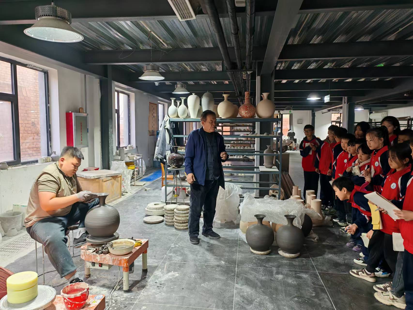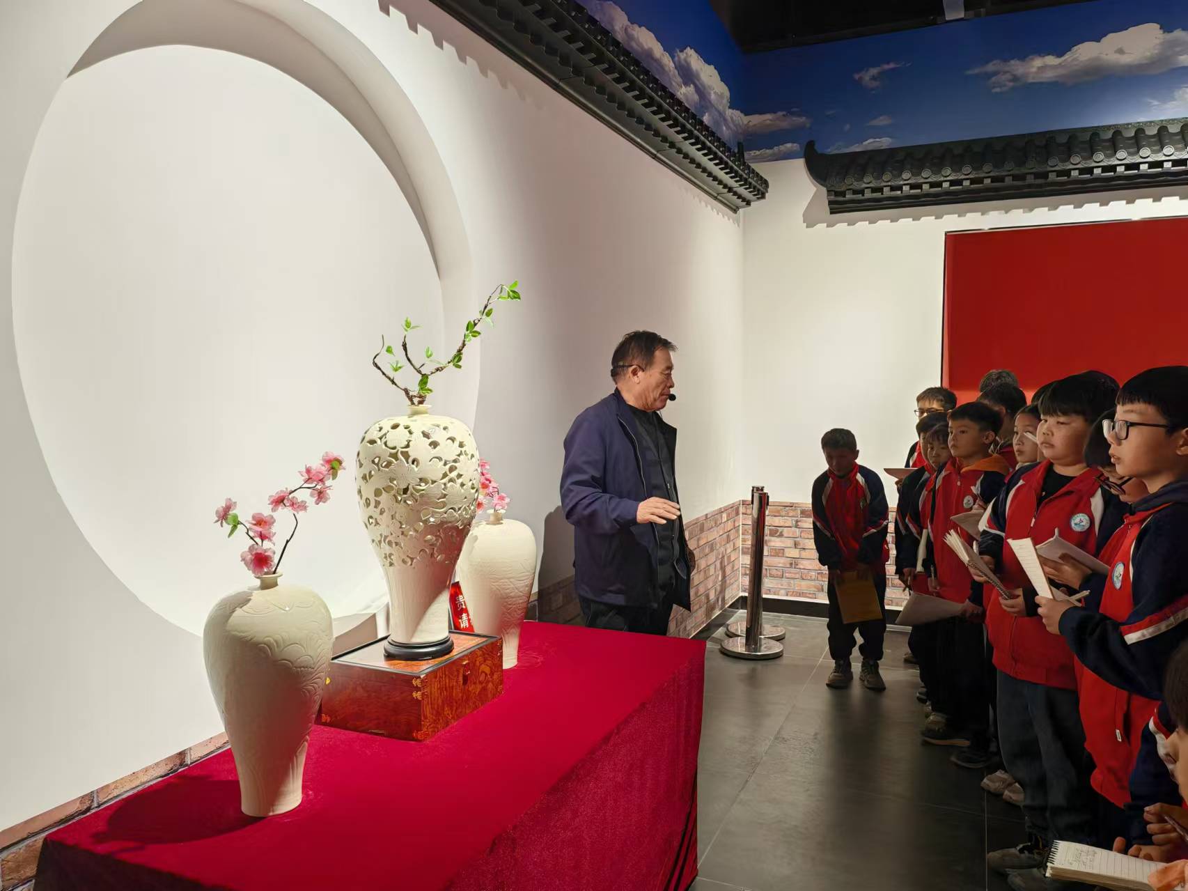 在工作人员带领下,师生有序参观各个展示区域。从白如玉、薄如纸、声如磬的定瓷成品,到刻花、划花、印花等定瓷多种装饰技艺,每一件展品、每一种技艺都诉说着定瓷的辉煌历史,令人赞叹。讲解员详细介绍了定瓷的起源、发展和技艺。随着转盘转动,陶泥在陶艺师手中逐渐成形。通过参观现场制作,学生们对定瓷有了进一步的了解,大家被匠心深深感染,对定瓷艺术充满敬仰和热爱之情。