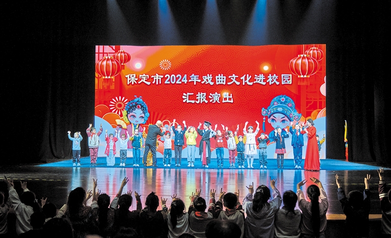 戏曲文化进校园,传统艺术润童心。11月9日,保定市2024年“戏曲文化进校园”汇报演出在关汉卿大剧院举行。保定老调、京剧、河北梆子、昆曲、新颖调等剧种好戏连台,武生、花旦、青衣等艺术形象纷纷亮相,小演员们身着华美戏服,曲辞唱腔、一招一式尽显功底,博得满堂喝彩。来自我市十余所学校的孩子们生动地诠释戏曲独特魅力,表达他们对传统艺术的热爱与传承,以一场别开生面的艺术盛宴展示戏曲文化在保定校园蓬勃发展的丰硕成果。