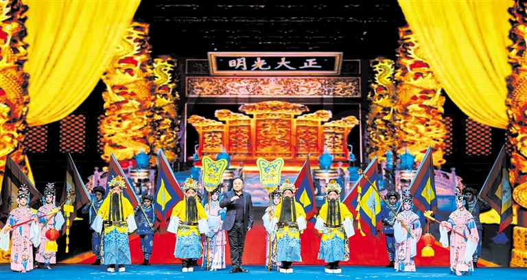 多彩童年,戏韵悠长。一段段国粹经典在孩子们的表演下绽放出夺目光芒,展示保定青少年的精神风貌和艺术才华。国家一级演员、国家级非物质文化遗产保定老调省级代表性传承人杜振忠和高新区第一中心学校同学们联袂演出的保定老调《潘杨讼—金殿封赏》场面恢宏,“老戏骨”与“小戏娃”同台亮相,尽显戏曲艺术生生不息的繁荣气象,将演出推向了高潮。