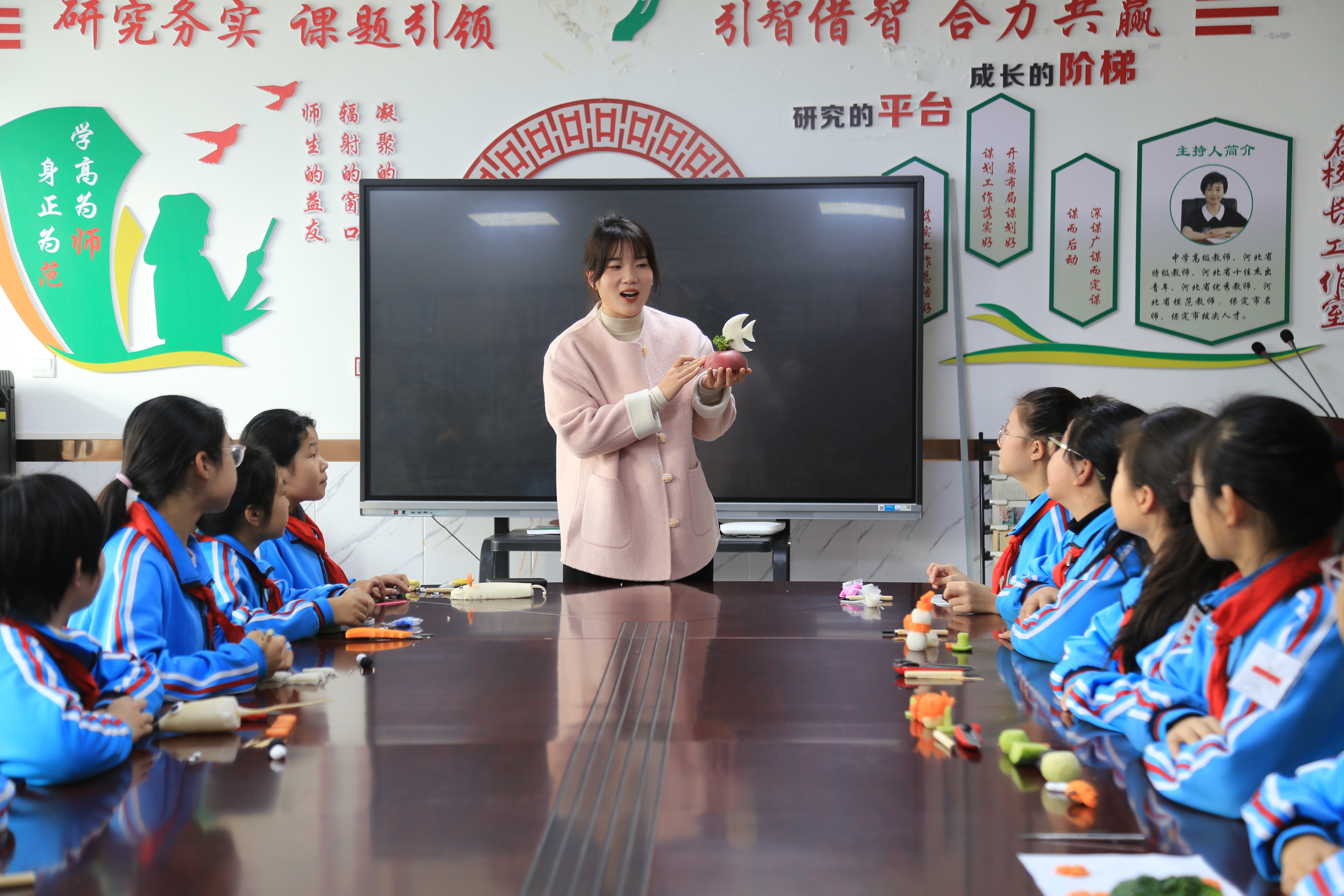在学校萝卜种植田里,学生们就像一群勤劳的小蜜蜂,穿梭其中,他们一个个紧紧地抓住萝卜的叶子,鼓足了劲儿地拔萝卜,开启了一场独特的“劳动之旅”。在创意课堂上,学生们拿着萝卜,通过切割、雕刻等方式,让手中的萝卜摇身一变,有的成了机灵可爱的小老鼠,那尖尖的耳朵仿佛在聆听着什么;有的被雕刻成了娇艳欲滴的花朵,还有的被雕刻成了小南瓜、雪人、年兽等,整个课堂都充满了孩子们的奇思妙想和欢声笑语。